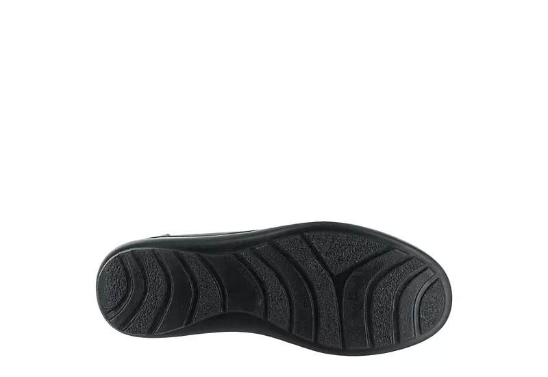 Take a stroll amongst the clouds with the Easy Street Ultimate women’s slip-on sneaker. With a faux leather upper and dual elastic panels, this slip-on sneaker is both flexible and lightweight for all-day wear. The Comfort Wave technology and synthetic sole offer stable, cushioned support as you take care of business.